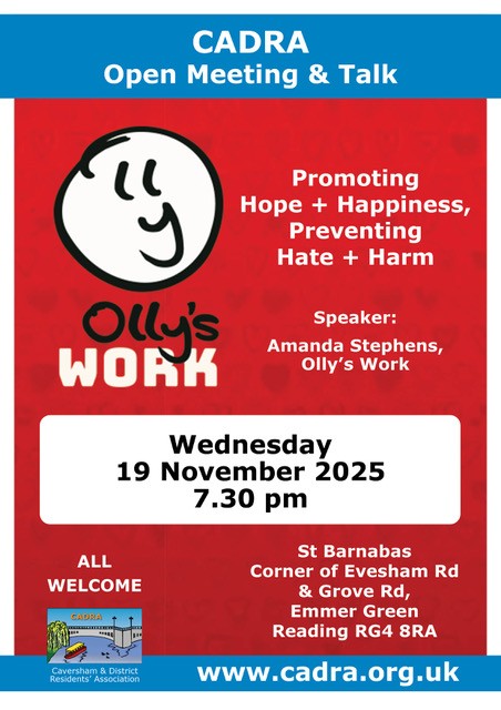My time as Chair has been hugely rewarding and it has been a great pleasure meeting so many of you. Thank you all for the support you bring - CADRA is nothing without its members. Please keep your comments coming and help CADRA to nurture and support Caversham and Emmer Green.